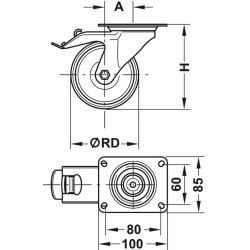 Møbelhjul i stål og polyamid - brems - bæreevne 200 kg