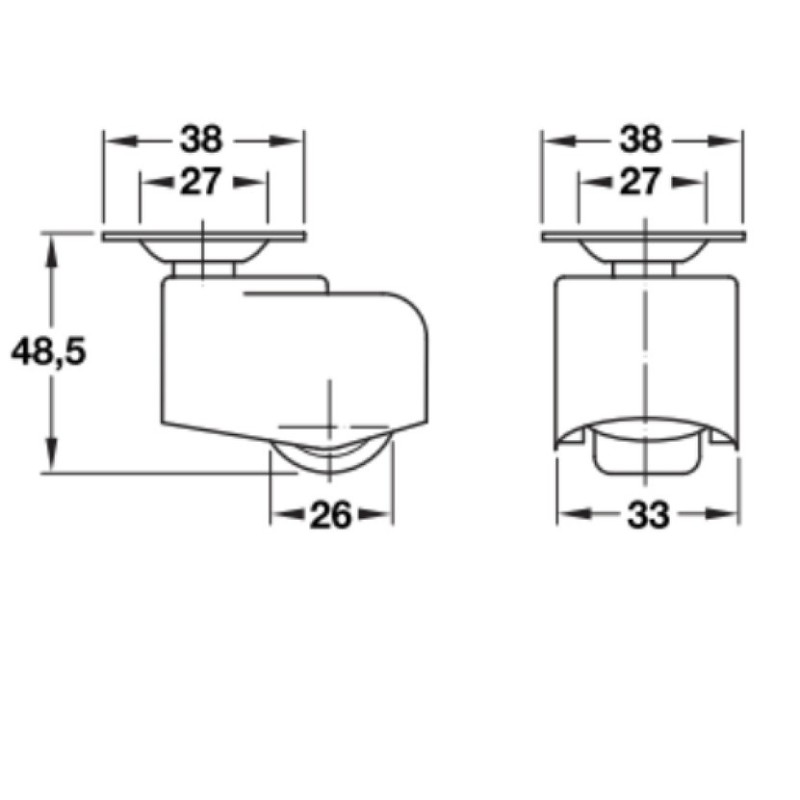 • Hjulets diameter: Ø26 mm