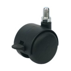 Klassisk og enkelt hjul i svart plast med plastskjerm. Dette hjulet er styrbart og kommer med brems og gjengestift.