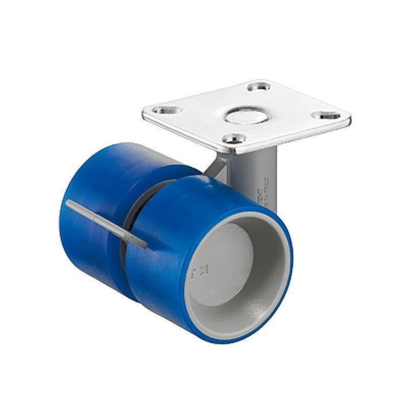 Dobbelt møbelhjul med brems i blå/grå plast - bæreevne 35 kg