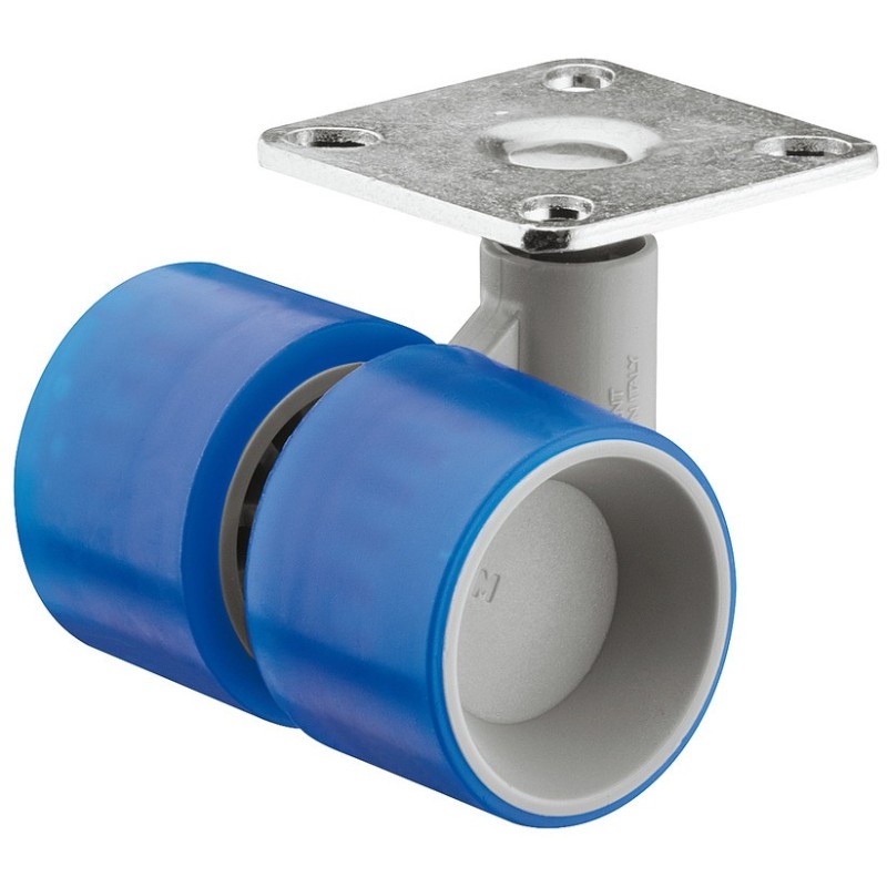 Dobbelt møbelhjul i blå/grå plast - bæreevne 35 kg