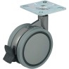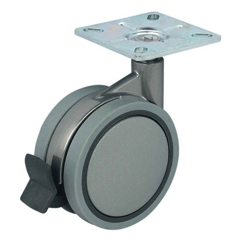 Møbelhjul, grå, mykt hjul, med brems, monteringsplate