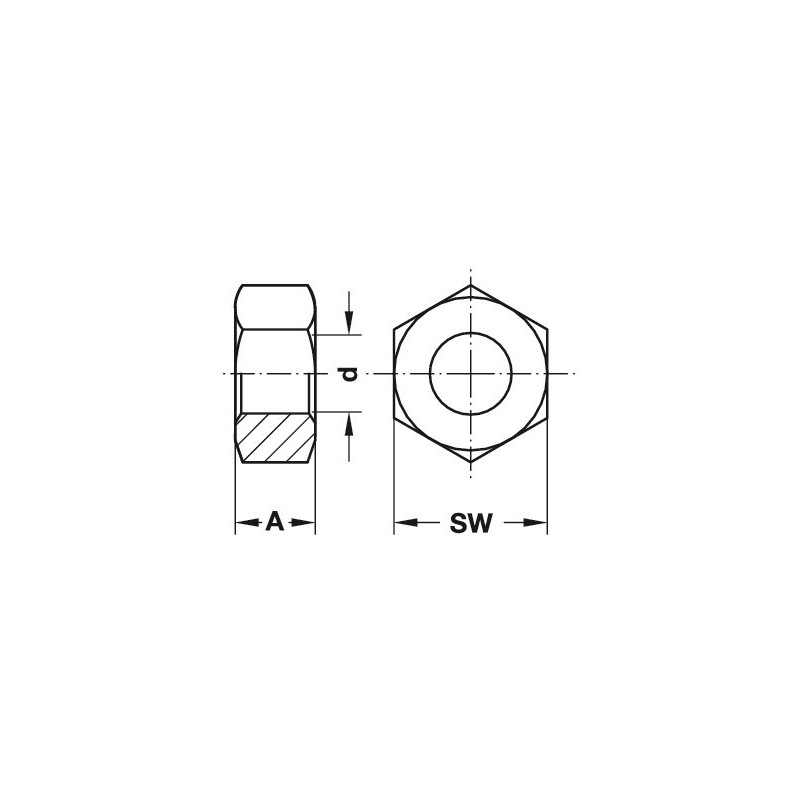 Mutter, klassisk DIN 934 i stål - M5