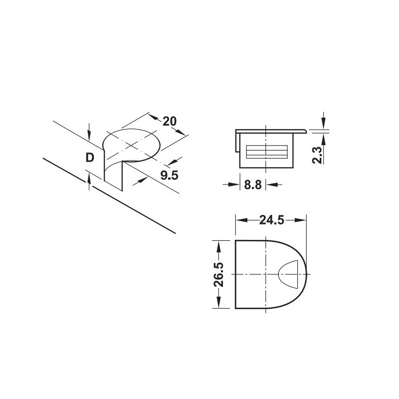 Hyllebærer. Rund ende, borehull Ø 5mm