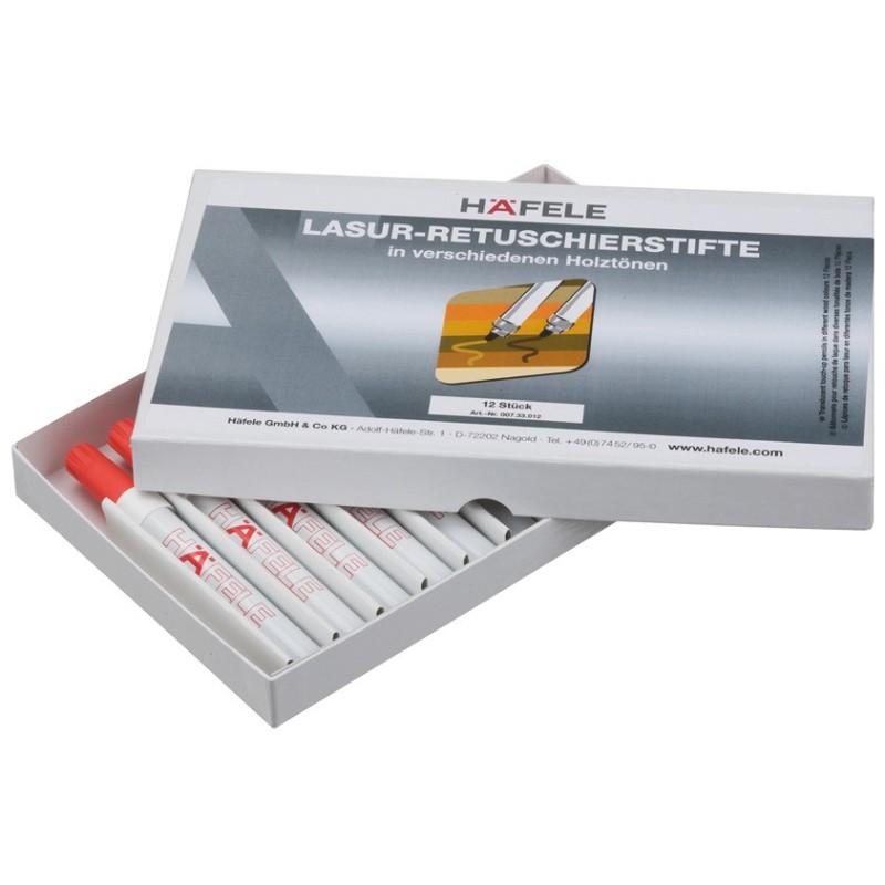 Reparasjonspenn i 12 forskjellige tretoner for reparasjonsarbeid og korrigeringer av riper og andre småskader på treoverflater. Fjern riper ved å tegne over skaden med en reparasjonspenn i den riktige fargen. Reparasjonspennen har en linjebredde på 4 mm.