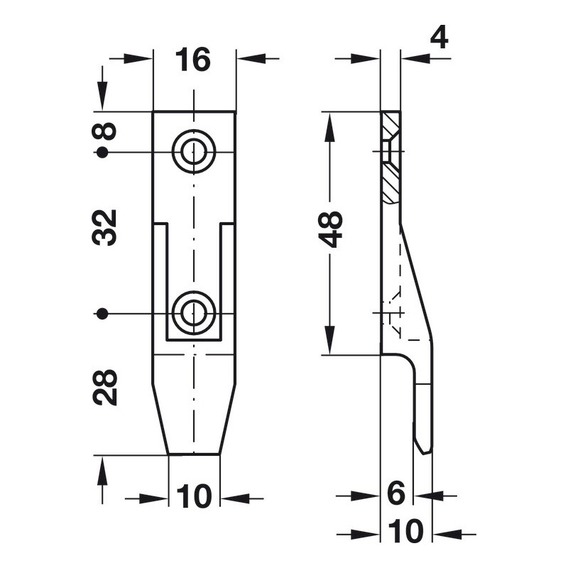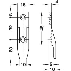 Som det kan sees på den tekniske tegningen, er festet laget for å være motstykket til samlefestet Häfele (del 1/2) (som du kan finne i tilbehør).