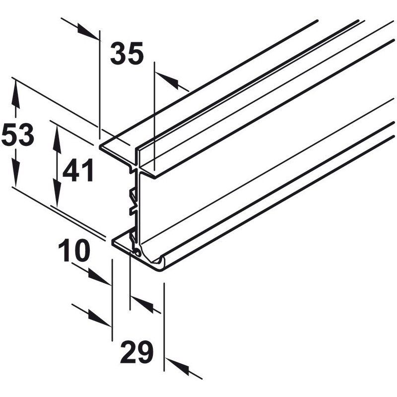 Skinnen monteres i toppen av skapet, hvorpå kørebeslaget kjører langs skinnen. Kommer ikke med forborede hull.