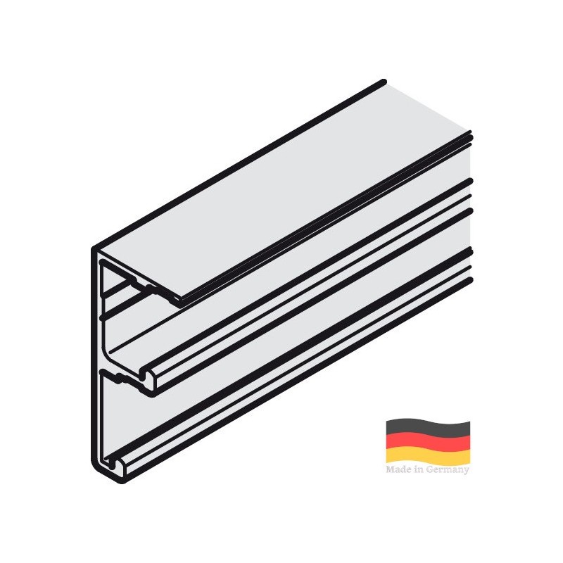 Dobbelt løpeskinne til Hawa skyvedørbeslag i seriene MF og VF. Styre- og løpeskinne er nødvendige for at skyvedørssystemet fungerer. Finn styreskinnen i tilbehøret.