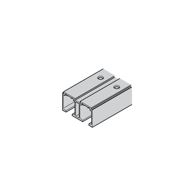 Dobbeltskinne (3) til Häfele Slido skyvedører. Denne modellen er til montering i taket og passer til 2 skyvedører. Skinnen er med forborede hull og monteres med skruer.