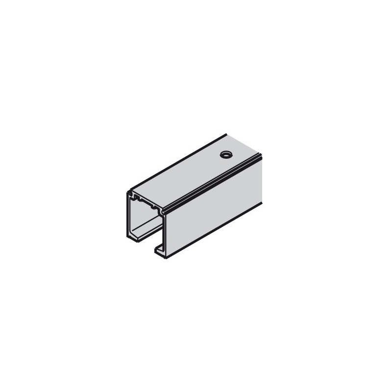 Skinne (7) til Häfele Slido skyvedører. Denne modellen er for montering på vegg eller i taket. Skinnen har forborede hull og monteres med skruer. Ønsker du å montere denne skinnen på veggen, må du kjøpe en monteringsplate (se tilbehør)