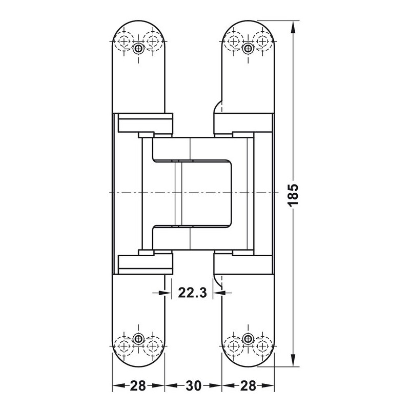 Skjult hengsel til dører. Finnes med forskjellige overflater