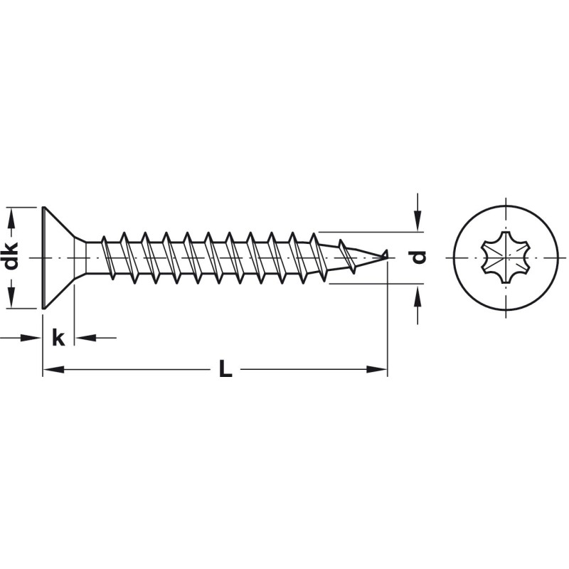 Spånplateskrue Senket Helgjenger Ø4,0 - Torx TS20