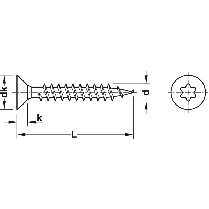 Undersenkede sponplateskruer med Torx TS20 i rustfritt stål
