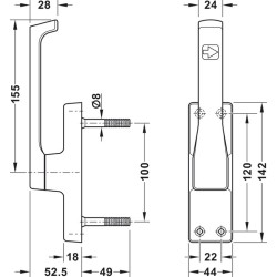 Dørbetjente låsebolt som er laget for å lukke en dør eller port i topp og bunn via en M10 gjengestang (se tilbehør).