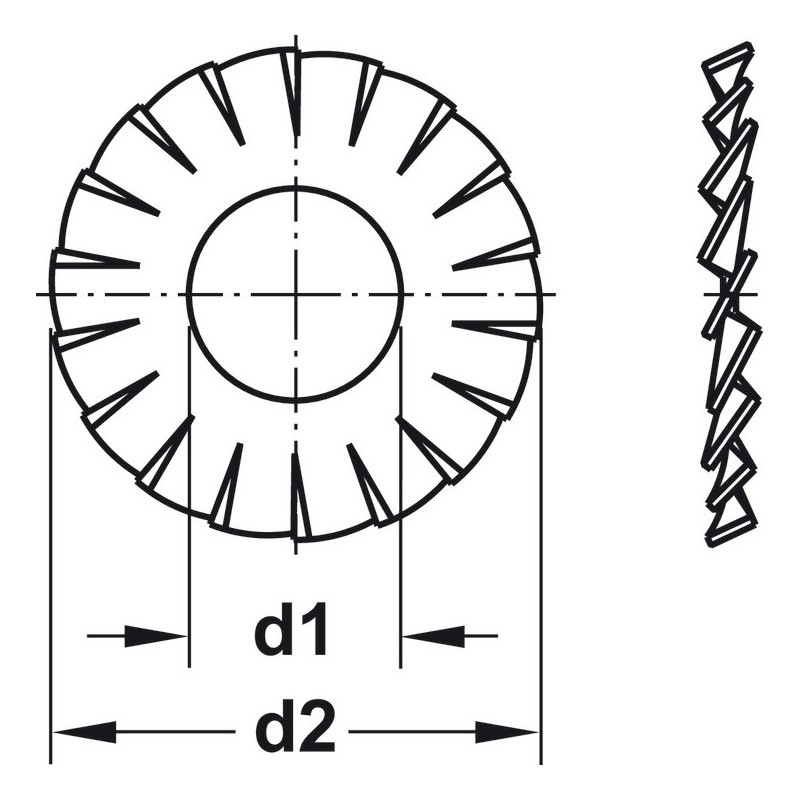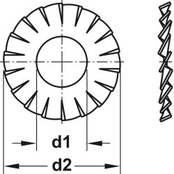 Tandskive DIN 6798 i forzinket stål.