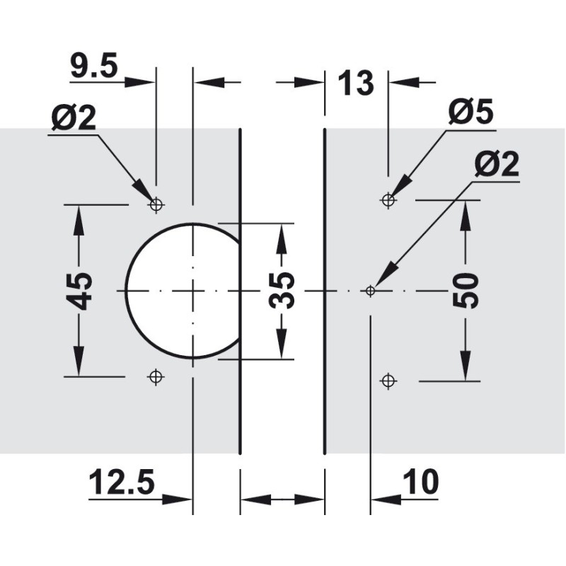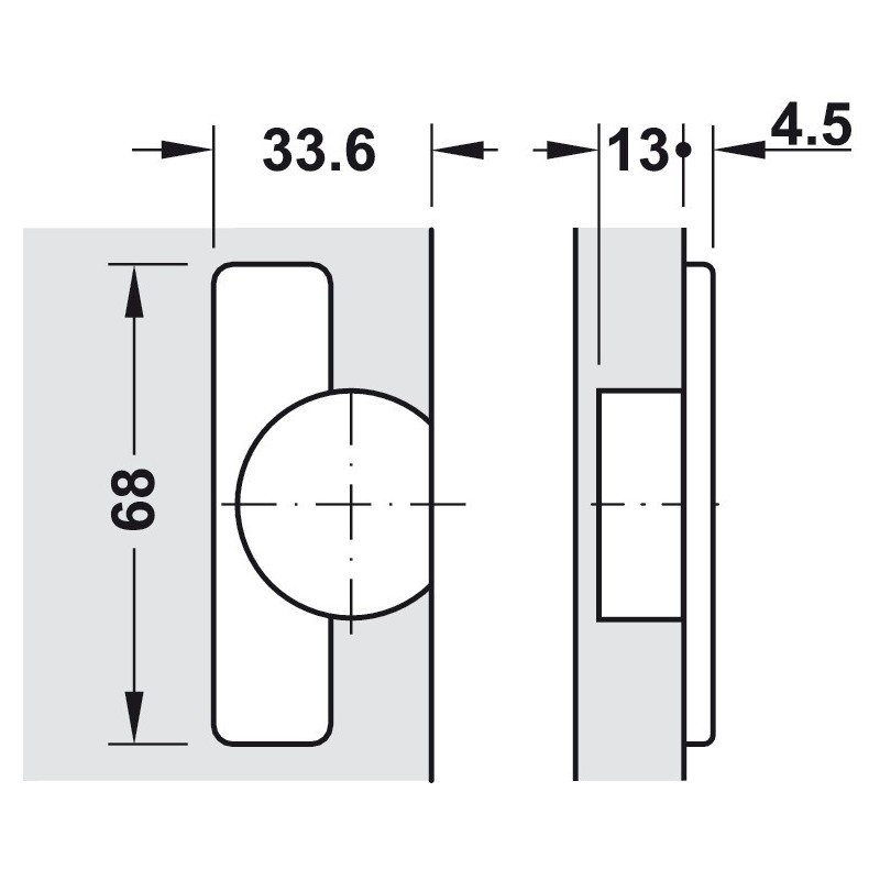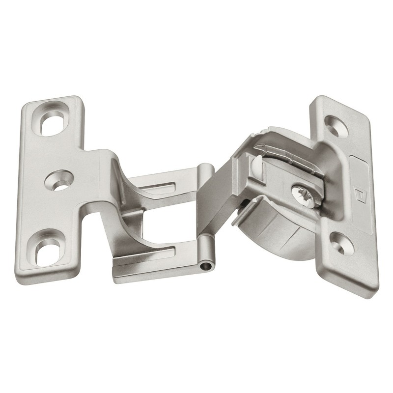 Spesialhengsel med kort arm og åpningvinkel på 270° grader. Dette hengselet har et flatt design og er særlig egnet for utvendige dører, til f.eks. modul- og profilsystemer, samt medtalskap og overfalsede dører.
