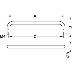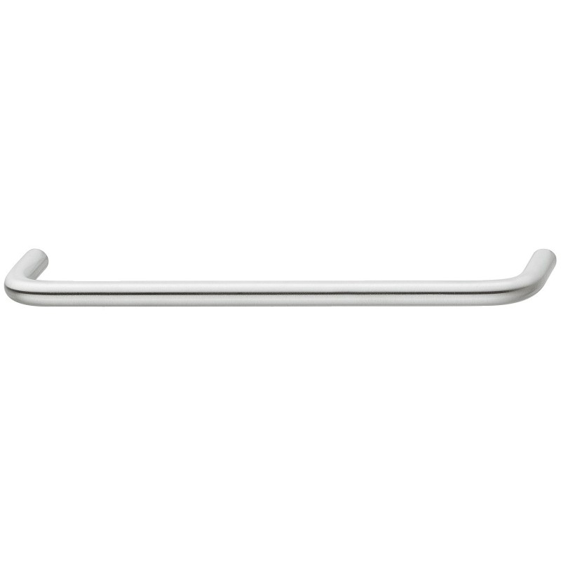 Klassisk og enkelt rundt bøjlegrep med en diameter på Ø8 mm og med avrundede hjørner. Grepet er produsert i stål og har en forkrommet børstet overflate.