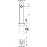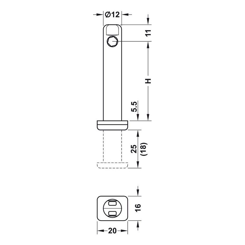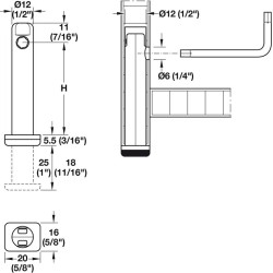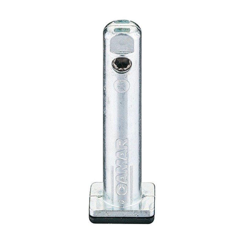 Stillfot i sinklegering med firkantet fot for innboring i sokkel. Denne stillfoten settes inn i sokkelen, og brukes til høydejustering av sokkelen. Kan justeres med + 25 mm