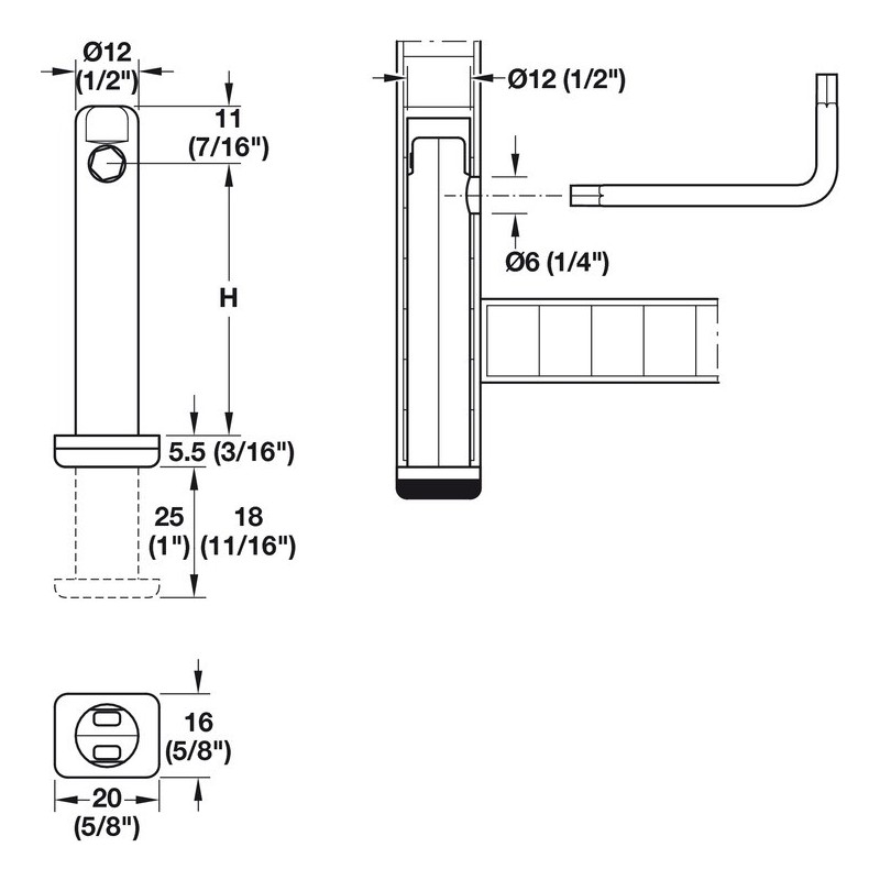Høyde H mm Boredybde mm