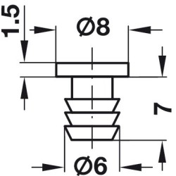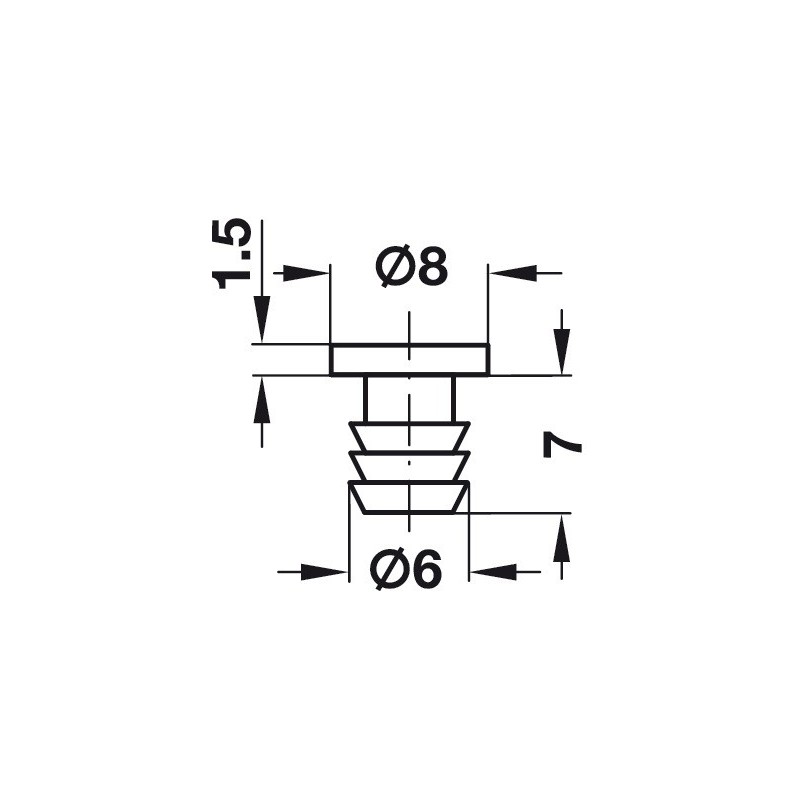 Liten rund anslagsdempere for innpressing i borehull Ø6 mm. Denne anslagsdemperen egner seg godt til bruk på skuffer, skap eller annet. Anslagsdempere har en støtdempende effekt, og beskytter dine skap og skuffer mot riper.