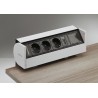Smart og funksjonell stikkontakt for klemmontering på skrivebordet. Denne skal bare klemmes på bordet, og boring i bordplaten er derfor ikke nødvendig.