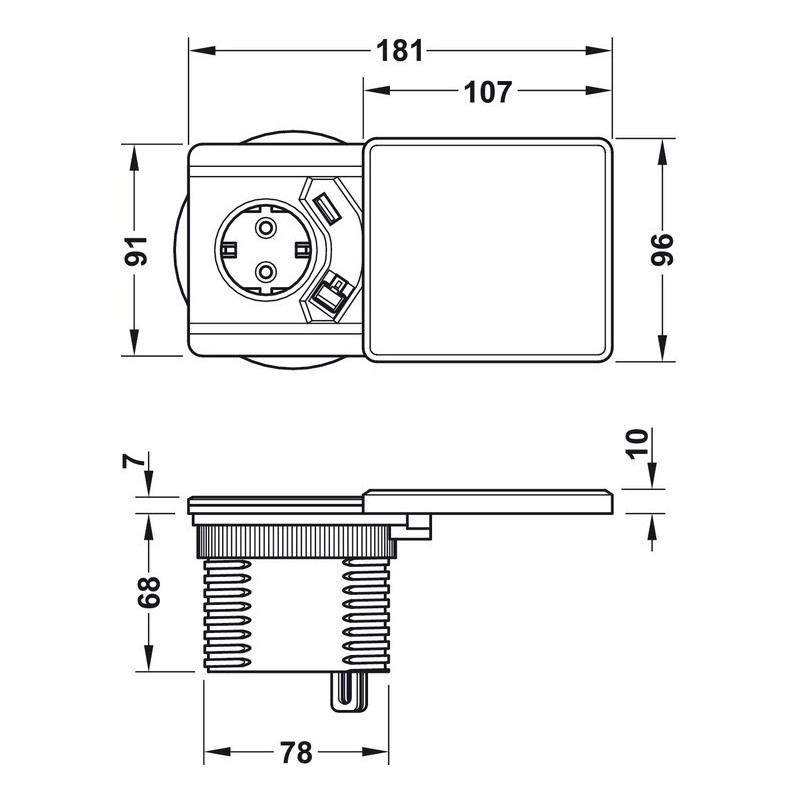 Super smart, enkel og funksjonell strømuttak med lokk. Lokket skal bare skyves til siden for å få tilgang til strømuttaket.