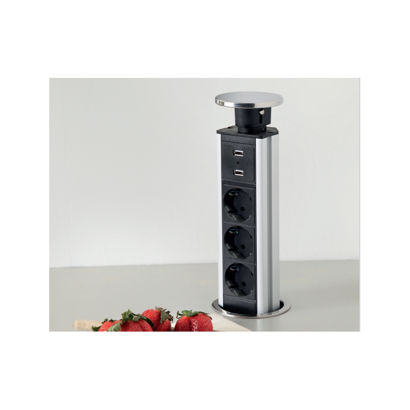 Power Dock, skjult strømuttak, 3 stikkontakter, 2 USB-ladere