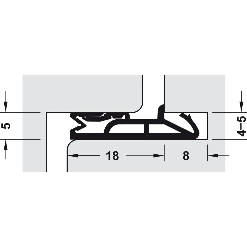 Laget av termoplastisk elastomer (TPE) og passer til falsede dører med en falsningsbredde på 18 mm.