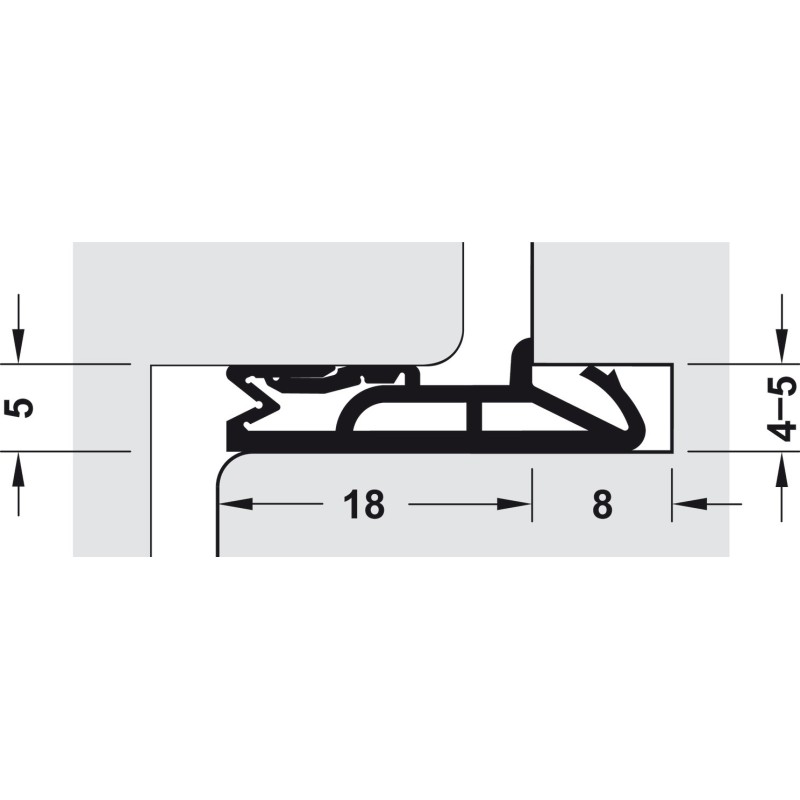 Tetningslisten er laget av tverrbundet silikon og sikrer mot trekk. Passer til dører med en falsbredde på 18 mm. Settes inn i en fresing på 4x8 eller 5x8 mm.