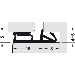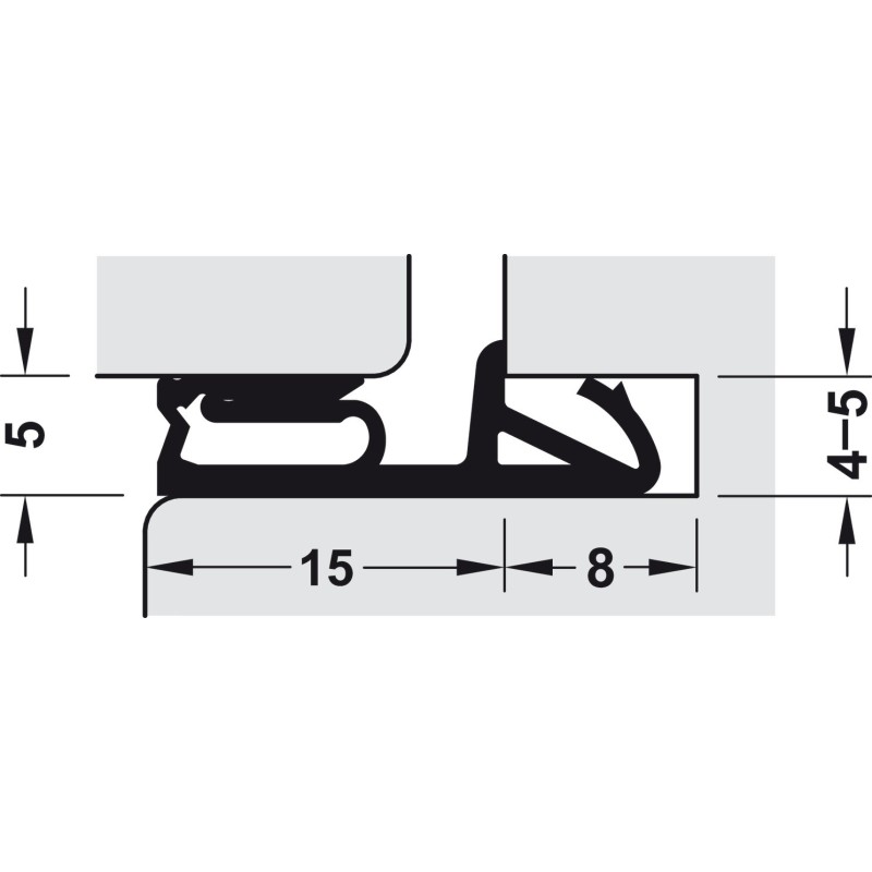 Laget i tverrbundet silikon. Passer til dører med en falsningsbredde på 15 mm. Settes inn i en fresing på 4x8 eller 5x8 mm.