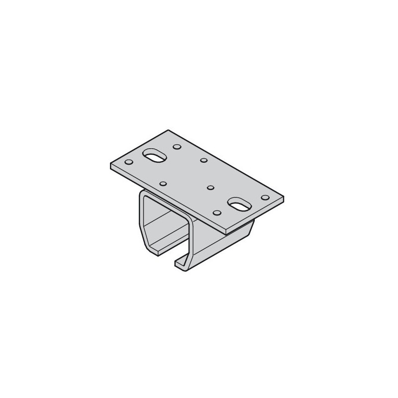 Opphengsbeslag til 1 skinne. Dette opphengsbeslaget er beregnet for oppheng i taket. Beslaget er produsert i stål og passer til skinnen og skyvedørsbeslaget til Slido D-Line13 500-Q og Häfele Slido D-Line13 750-Q.