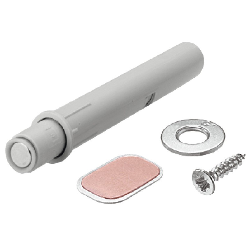 Pakken inneholder 1 Tiptomatic push-open-mekanisme, 1 motstykke for skruing inkl. skrue, og 1 motstykke for liming.