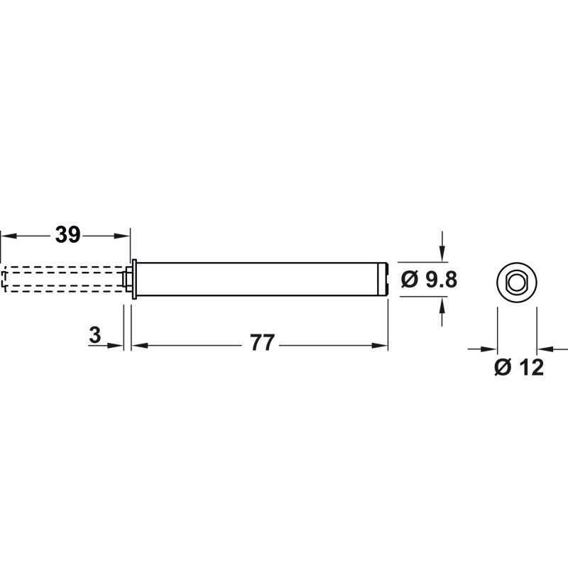Trykk-åpne-beslag med buffer for push-to-open funksjon. For innboring i skapside.