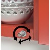 Når det trykkes på døren, åpnes døren ved hjelp av den lille fjederstiften.