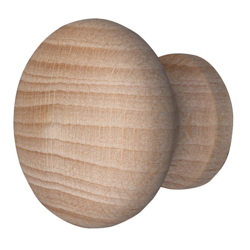 Klassisk rundt knopgrep i ubehandlet bøk. Dette klassiske runde grepet passer godt til skuffer og skap, og er et opplagt valg å bruke til gamle vitrineskap som skal males og moderniseres.