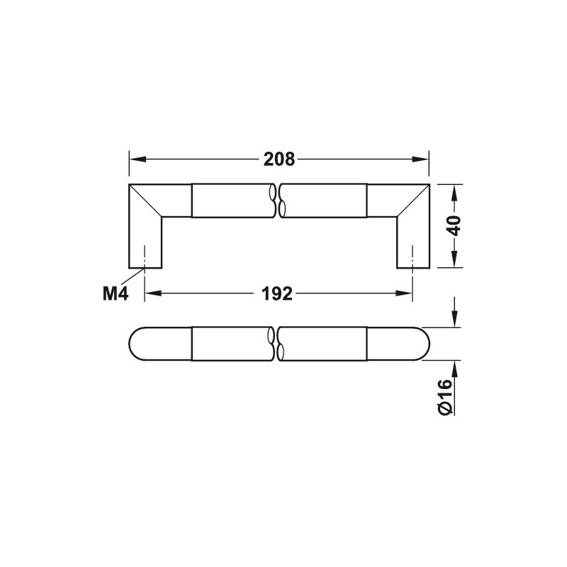 Håndtaket har en diameter på Ø16 mm.