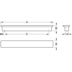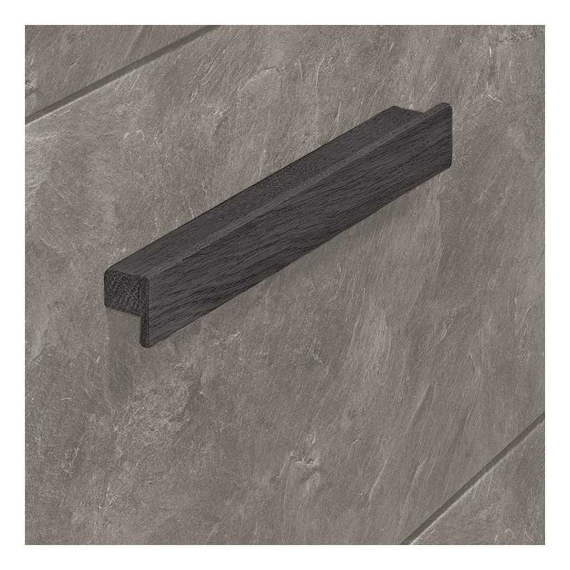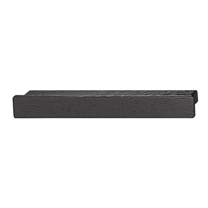 Enkel, rektangulær håndtak med myke kanter i svart beiset eik.