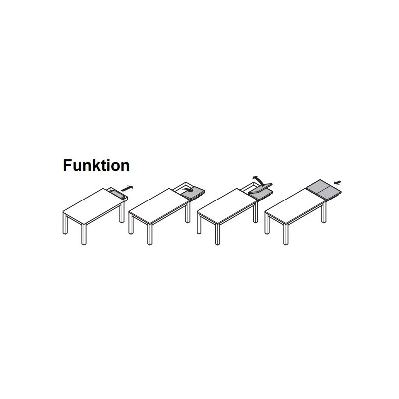 Smart uttrekk som gir ekstra plass i den ene enden av bordet. Trekk uttrekket ut og vippe platene opp. Så har du plass til 2 ekstra rundt bordet.