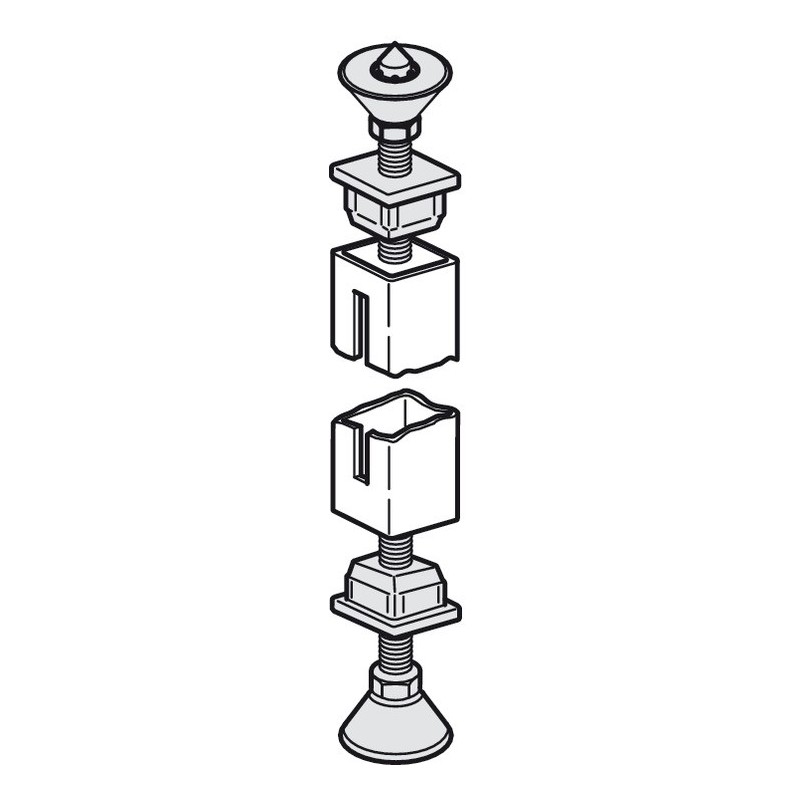Søylemontering for firkantet søyle 30 x 30 mm. Dette festet brukes til å montere søylen til gulv og tak. Festet består av to deler; en del for montering av søyle i taket, og en del for montering av søylen til gulvet.