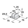 Søylefoten til den rektangulære søylen 60 x 30 mm. Søylefoten kommer med 2 skruehull slik at man kan skru foten/søylen fast til gulvet.