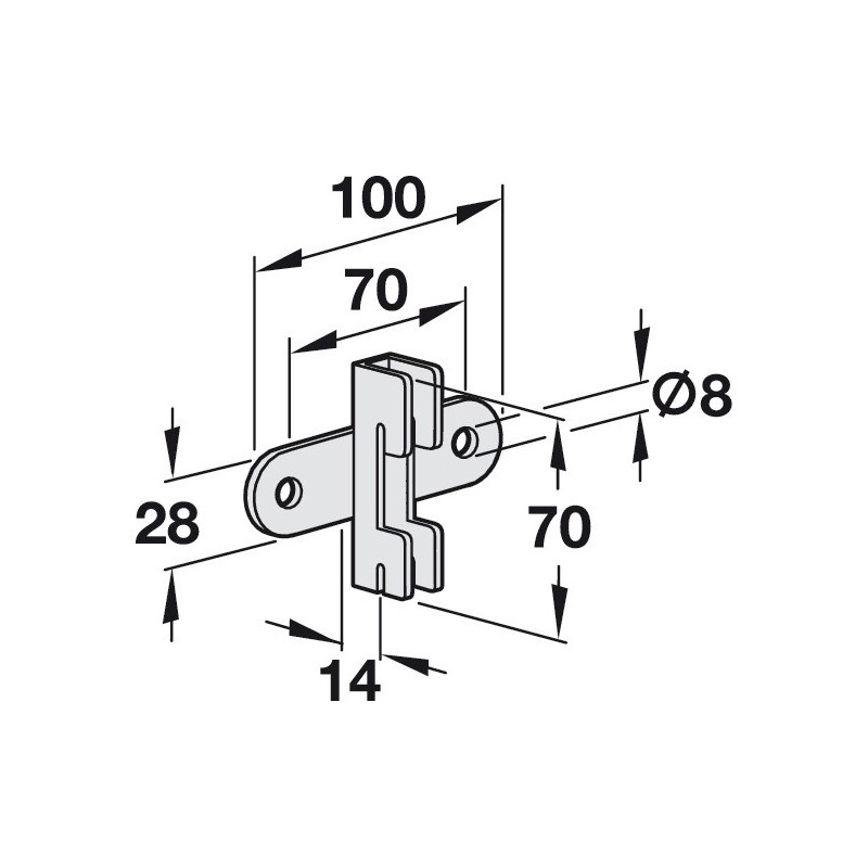 Veggfeste for montering av søyle med hull i 2 rader. Dette festet brukes til å montere søylen til veggen.