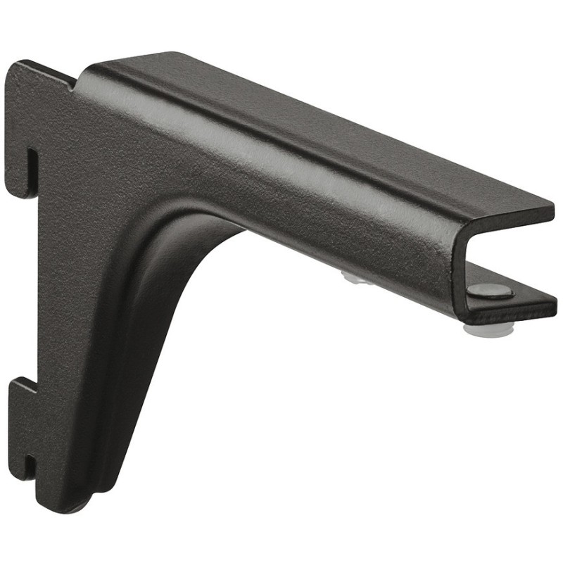 Hyllestøtten er produsert i stål og har en pulverlakkert sort overflate.