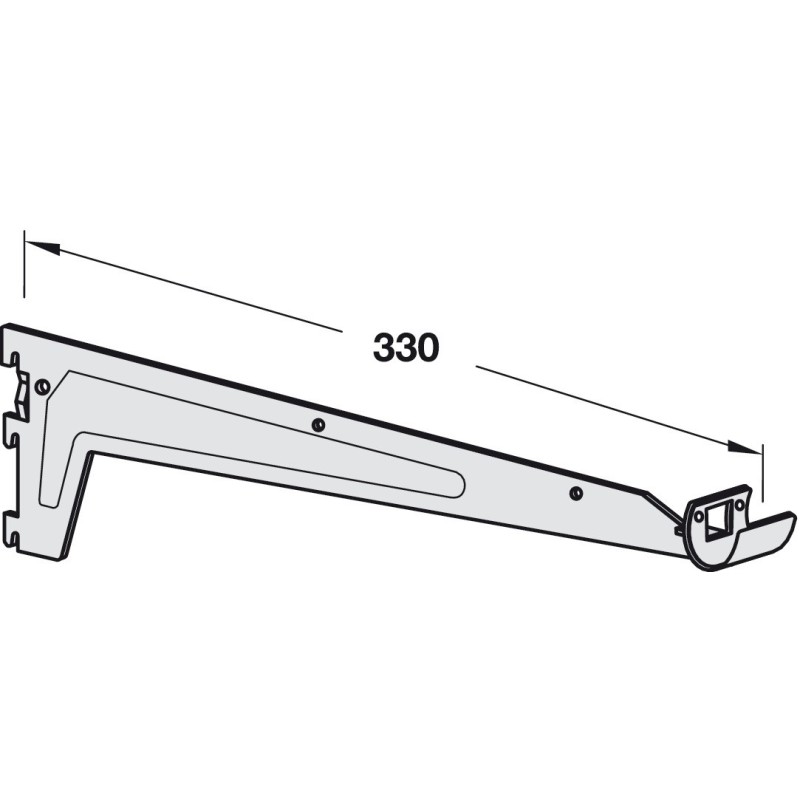 Hylleknekt til bøylestang. Denne modellen kommer med en holder til en bøylestang i enden av hylleknekten. Bøylestang medfølger ikke og må kjøpes separat - se tilbehør.