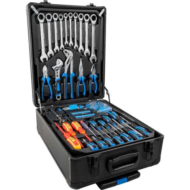 Inneholder en omfattende samling av skiftenøkler, toppratsett, skrutrekkere og mye mer. Settets er laget av robust krom-vanadium stål og karbonstål.