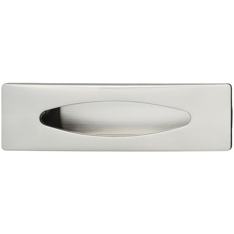 Smart rektangulær skålegrep med en oval åpning. Grepet er produsert i zinklegering og har en stålfarget overflate.