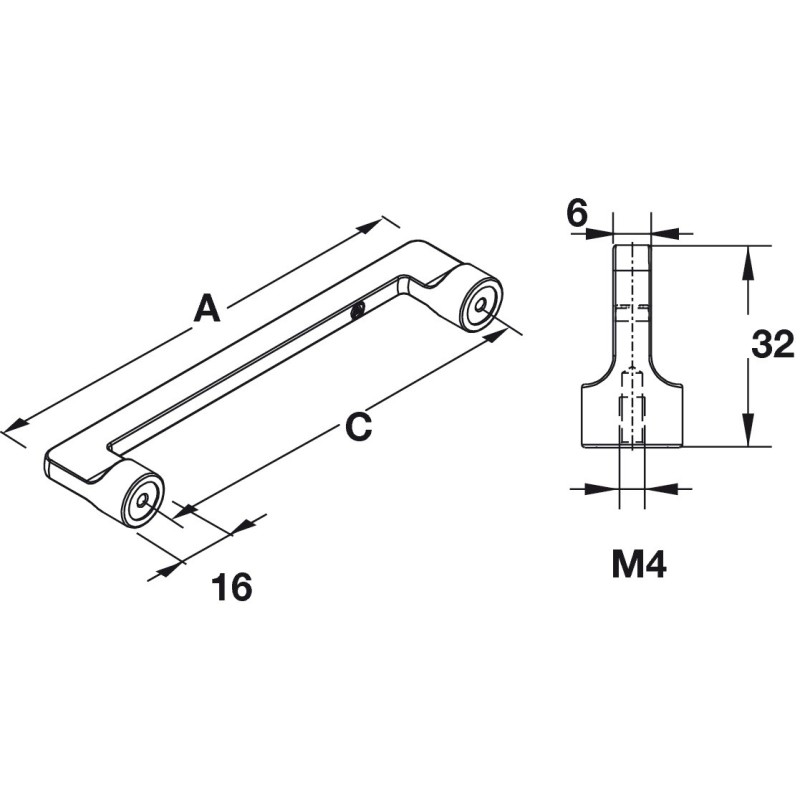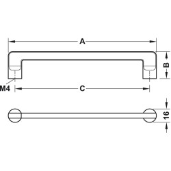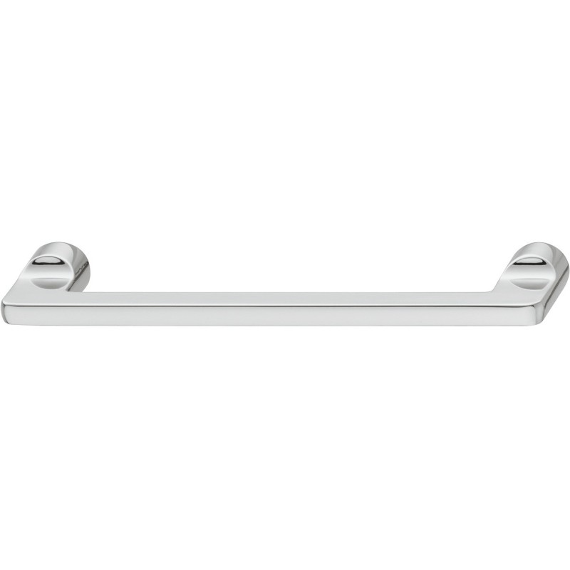 Häfele Design modell H1565. Et slankt og enkelt håndtak med runde sokler og en kantet front. Håndtaket er produsert i zinklegering og har en forkrommet polert overflate.