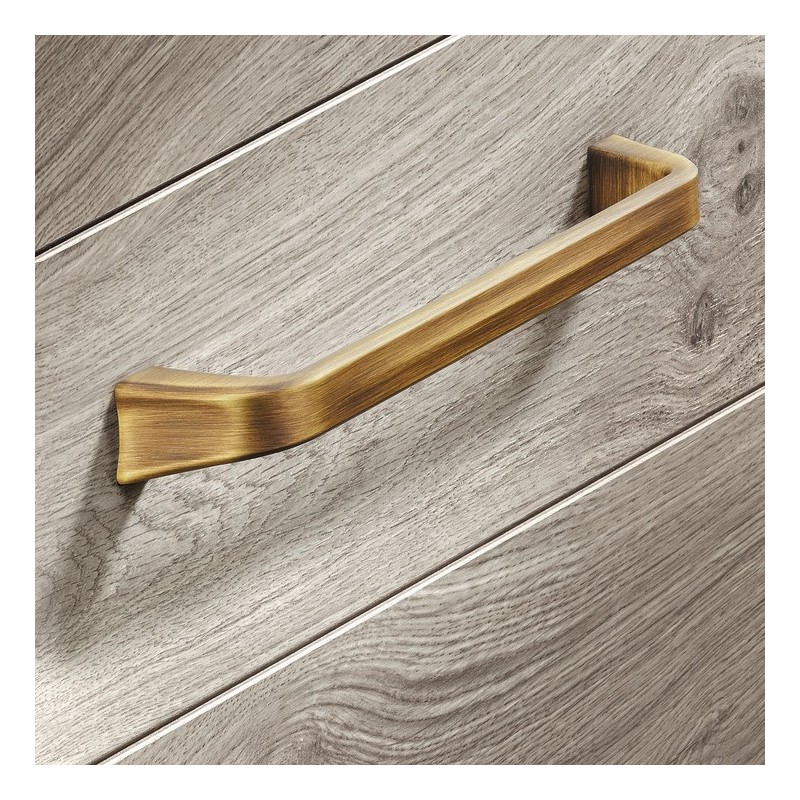 Et unikt og elegant grep med firkantede og brede sokler som får grepet til å fremstå elegant og annerledes. Grepet er produsert i zinklegering og har en børstet formessingsantikk overflate.