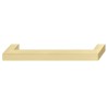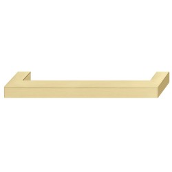 Et klassisk og enkelt firkantet håndtak. Håndtaket har et enkelt design som passer til nesten alle skuffer og skapdører. Håndtaket er produsert i zinklegering og har en børstet messingoverflate.