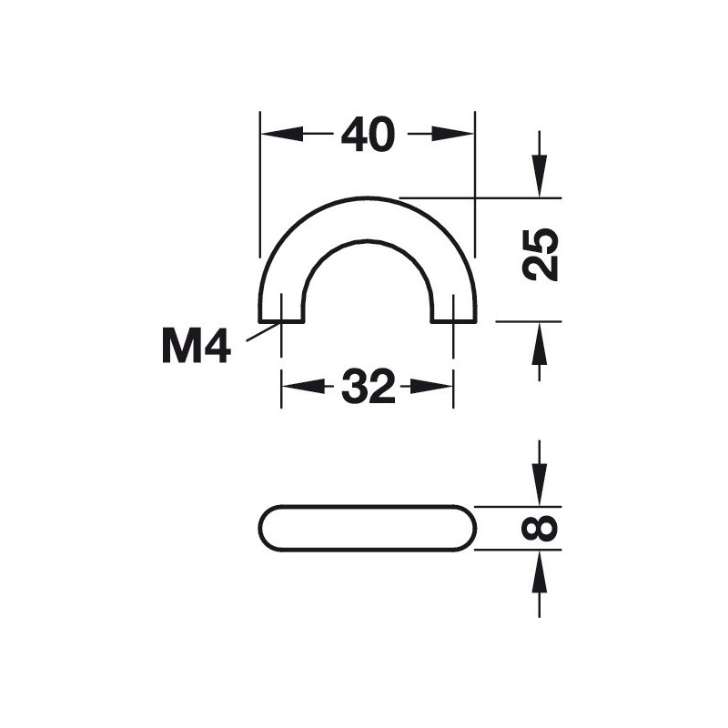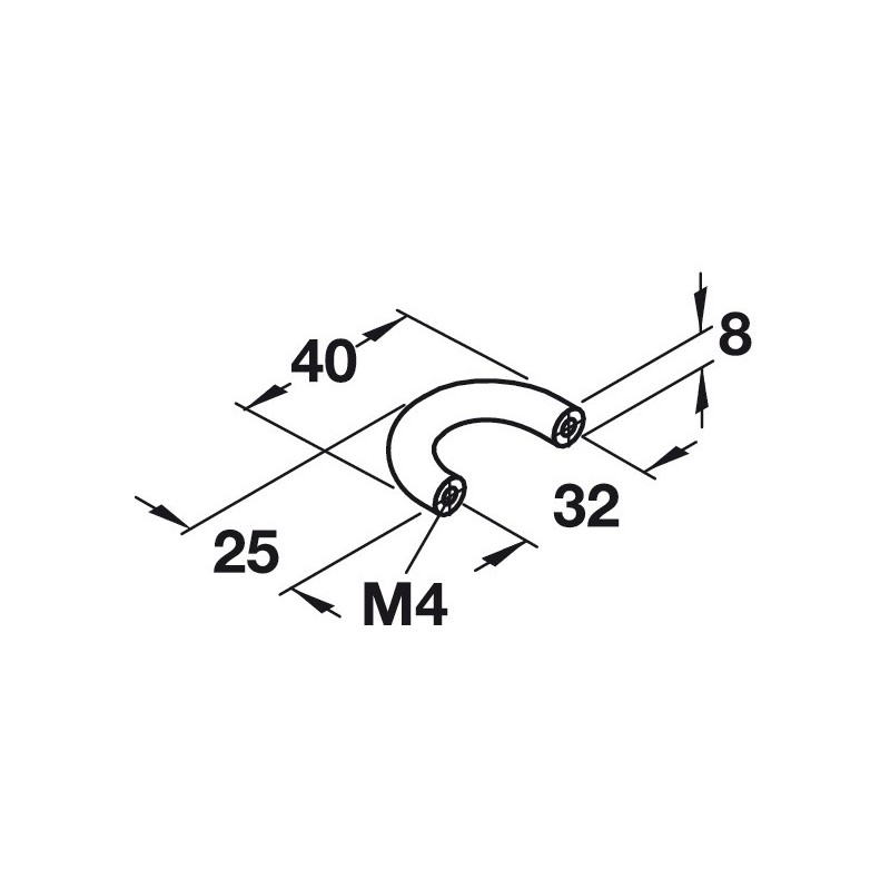 Liten mini-buegrep i forkrommet polert zinklegering. Grepet har en diameter på 8 mm og har en perfekt størrelse til små og mindre møbler.