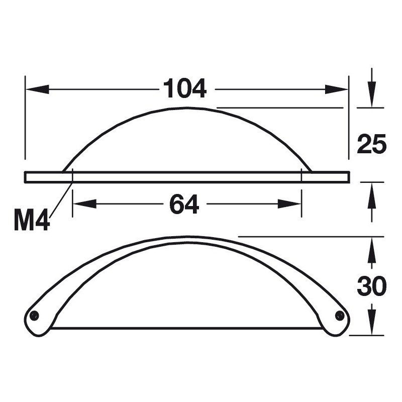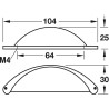 Gammeldags skålegrep formet som en halvsirkel, hvor det tas tak nede fra. Grepet er produsert i zinklegering og har en stålfarget overflate. Hvert grep er bevisst påført spor etter bruk, og derfor er hvert grep unikt.